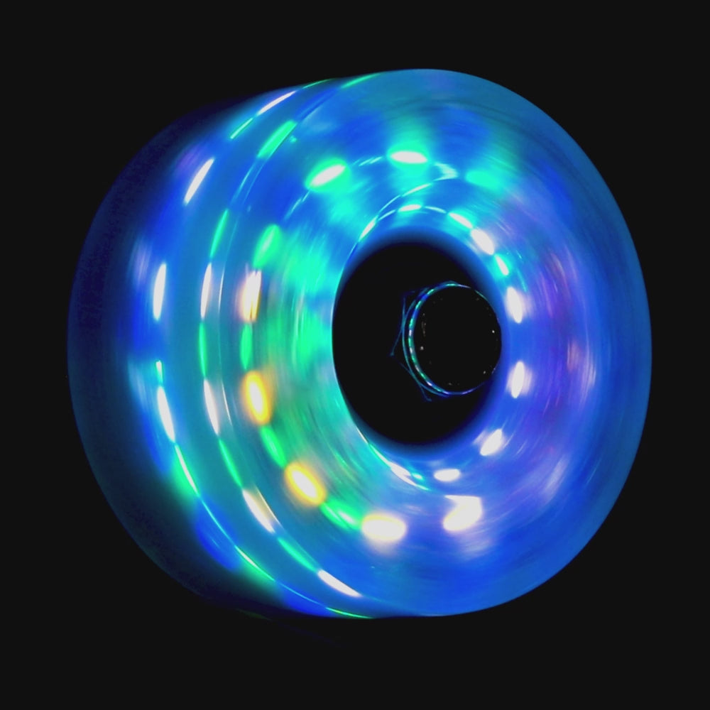 Light up every roll with Crazy Skates BRIGHT Wheels. Featuring our advanced LED wheel core, skate bright with lights positioned on both the running surface and the side face of the wheel - delivering unmatched visibility and a dynamic glow from every angle - these wheels are BRIGHT.
