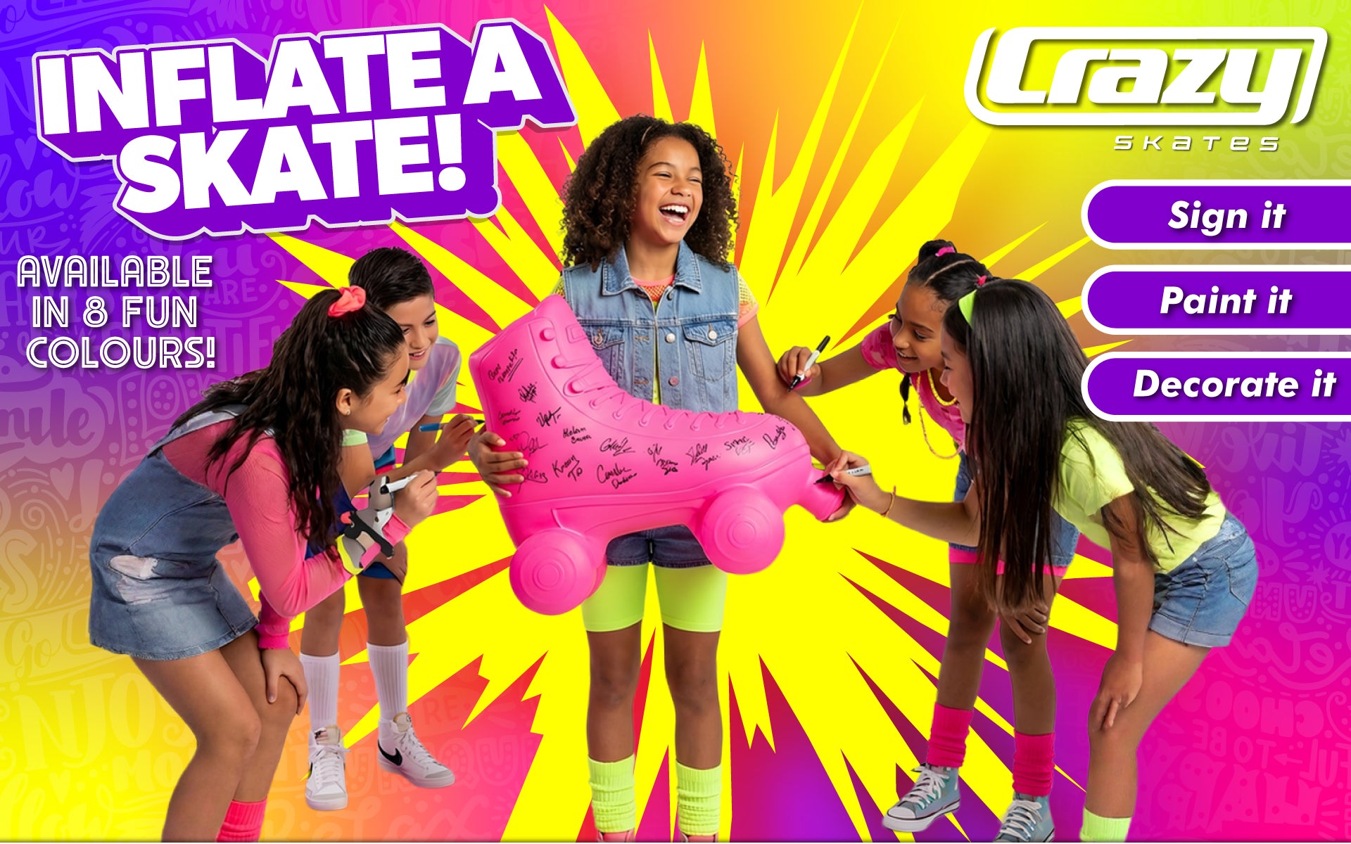 You can PAINT or BEDAZZLE your larger than life INFLATE-A-SKATE and make it a truly spectacular centerpiece in your home or business.
