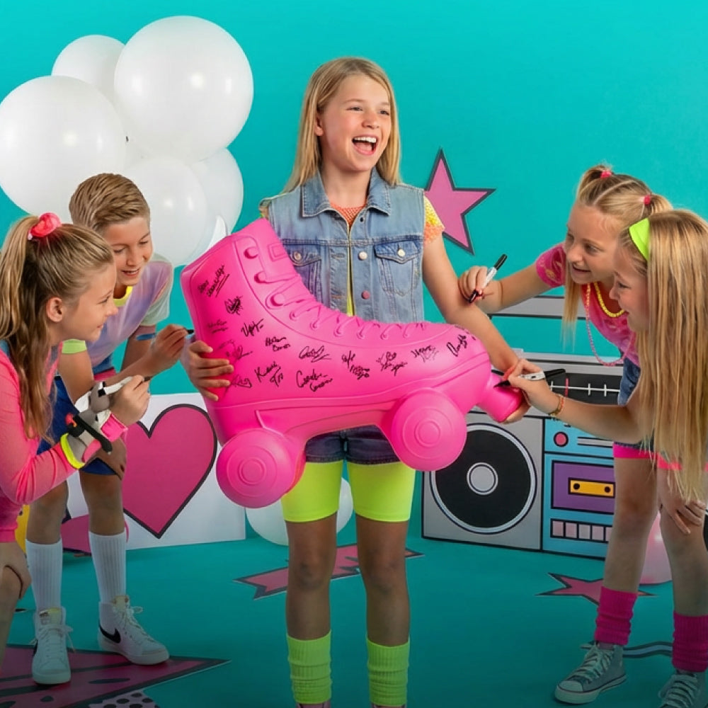The INFLATE-A-SKATE is perfect for the most excellent Birthday Party center piece that can be signed by all guests attending! The INFLATE-A-SKATE will also last for years! What a wonderful keepsake that reminds you everyday of the fantastic and memorable skating birthday party held at your skating rink!